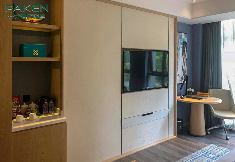 Paken опытный поставщик мебели гостиницы и угоженный предложить вам наш обширный выбор изготовленного на заказ набора комнаты для гостей гостиницы который мы изготовляем в Китае.